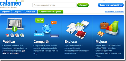 Sirve para subir información de todos los temas y hacer que toda la gente que visita esta página vea dicha información. Calaméo es un programa que crea instantáneamente publicaciones web interactiva, gracias a un nuevo proceso de publicación extremadamente rico en información y muy fácil de usar